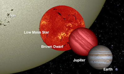 Les naines rouges sont également courantes – en fait, les astronomes disent qu'elles sont le type le plus commun d'étoiles dans la galaxie. Les naines brunes sont également réputées pour être largement répandues, mais seules quelques centaines sont répertoriées à ce jour parce qu'elles sont très difficiles à observer. Les naines brunes et rouges sont plus petites et plus froides que notre Soleil, de plus, elles ne brillent pas très fortement. Si les naines rouges peuvent être comparées aux braises rougeoyantes d'un feu mourant, les naines brunes en seraient les cendres fumantes. Compte tenu de la faiblesse de son rayonnement, il est plausible que le Soleil puisse avoir un compagnon secret, malgré toutes nos recherches pendant de nombreuses années et avec une grande variété d'instruments.