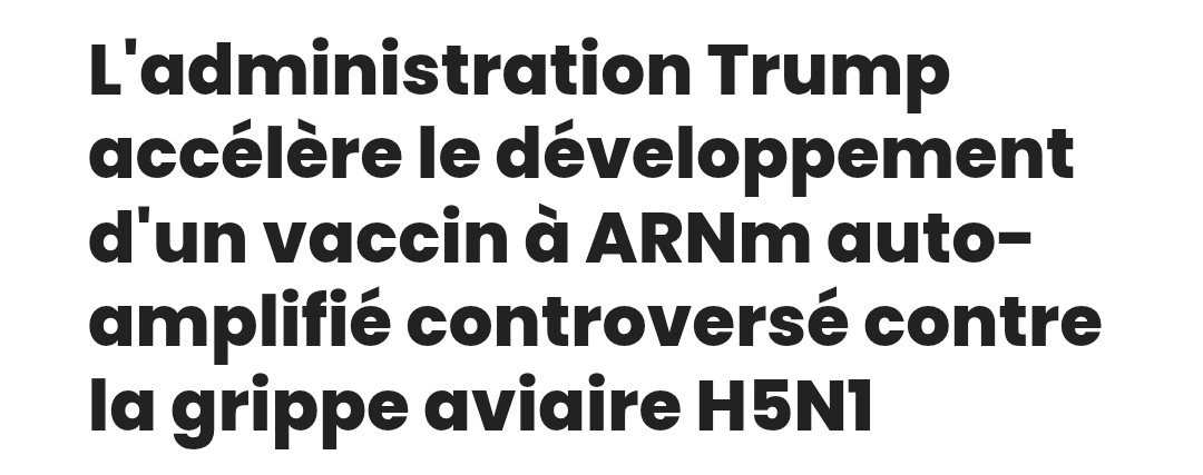 "L’administration Trump a accordé la désignation Fast Track à un candidat vaccin à ARNm auto-amplificateur (sa-ARNm) révolutionnaire – et controversé – ciblant le virus de la grippe aviaire H5N1.